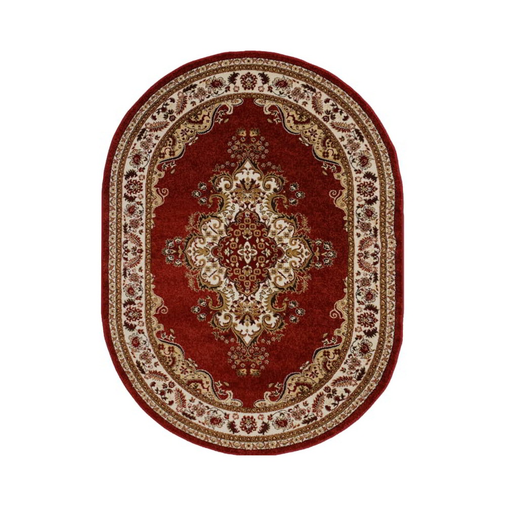 Kusový koberec ovál Medailon je vyroben ze 100% polypropylenu. Díky svému klasickému vzoru v tradičních barvách vnese eleganci do každého interiéru.