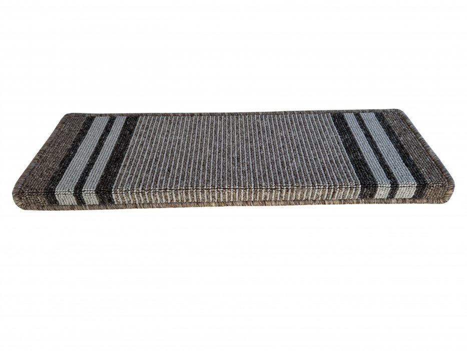 Koberec na schody GANDIA je smyčkového materiálu s jemnými linkami a na okraji s bordurou. Je odolný na sešlapání. Koberec se hodí do klasických i moderních typů interiérů a na všechny povrchy. Pro přichycení ke schodu slouží lepící páska, která je již z výroby připevněna na spodní stranu koberečku.